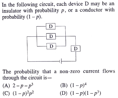 In the following circuit each device D may be an insulator with probability p or a conductor with probability 1 – p.